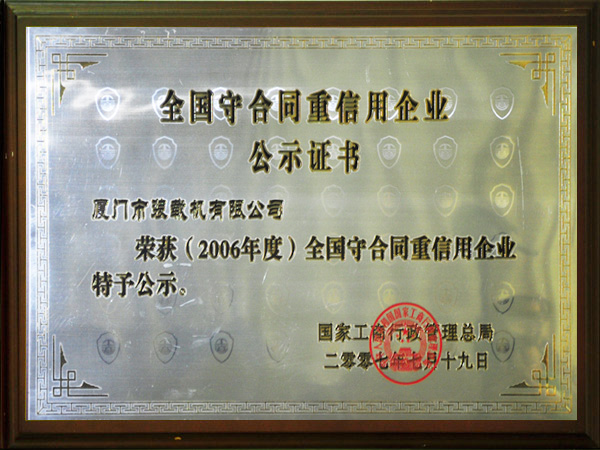 廈門市誠(chéng)信示范企業(yè)